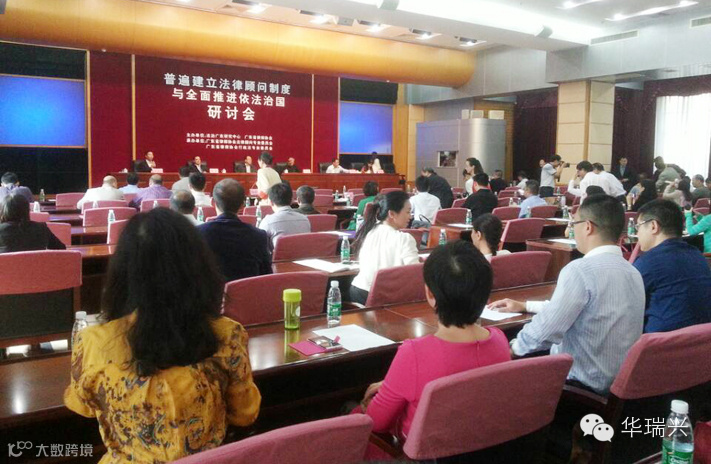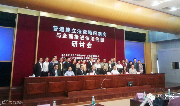 2014年11月23日,由法治广东研究中心、广东省律师协会主办,广东省律师协会顾问专业委员会、广东省律师协会行政法专业委员会承包的“普遍建立法律顾问制度与全面推进依法治国研讨会”于2014年11月23日下午14:30-18:30在广东省党校文体中心二楼举行,本次研讨会议题是律师在依法治国中,为党委、政府提供法律顾问服务的地位和作用以及如何为党委、为政府提供法律顾问服务。省委政法委副书记贺建军、省委党校副校长苟志效、省高院行政庭副庭长付洪林参加了会议并发表了讲话,随后中山大学法学院刘恒教授、法治广东研究中心主任宋儒亮教授分别作了《努力提升律师在依法治国中的地位和作用》、《看法治建设中不适用不符合问题,谈法律顾问的价值和作用》主题报告,广东广信君达王春平律师、广东省律师协会政法专业委员会主任何富杰律师、广东恒益律师事务所周磊律师对党委建立法律顾问制度、政法法律顾问制度的定位与实施、律师如何为政府提供法律顾问服务发表了专题研讨,之后省法制办顾问处李艳梅处长对律师为政府提供法律服务专题研讨进行了评议:1、肯定政府实行法律顾问制度的必要性,政府不但需要设置法律机构负责政府日常的法律事务,专家级社会律师由于其独特的知识结构和社会经验,也是政府法律顾问中不可或缺的法律顾问资源,专家及社会律师主要在重大决策、重大疑难案件方面提供法律服务,政府将通过制度予以规定,目前省政府正在制定这方面的规章,年底或明年可以颁布实施。2、律师为政府提供法律服务,必须熟悉行政法律法规,必须专业,必须具备良好的职业道德,同时还要有全面的全是觉得大局意识,不可唯利是图,出馊主意,要为政府提供建设性的法律意见,要有理有据。