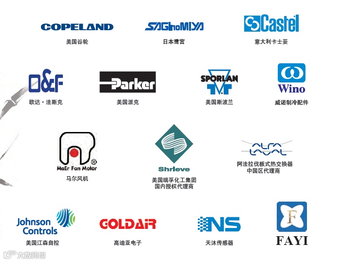 美国EMERSON 日本鹭宫 美国SPORLAN 意大利CASTEL 欧达法斯克 马尔风机 美国江森 美国瑞孚冷冻油 阿法拉伐系列 天沐传感器 高迪亚