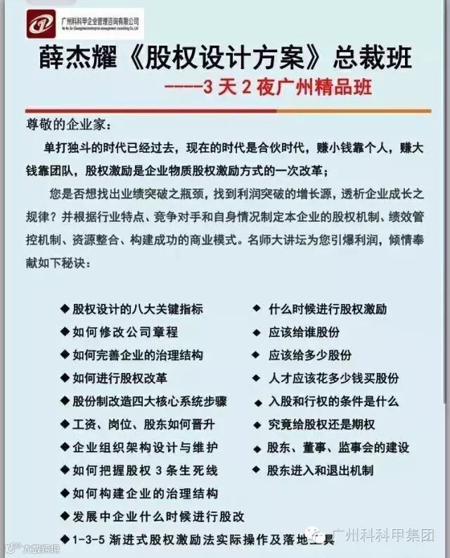 薛杰耀【股权设计与股权激励】3天2夜 精品学习班