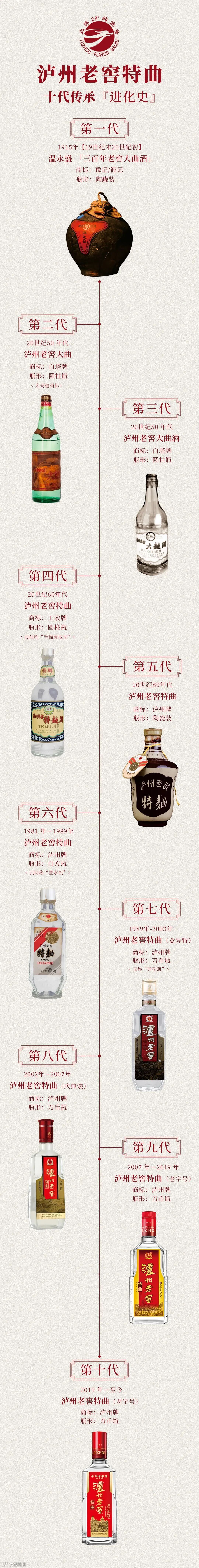 上世纪50年代,泸州老窖对泸州大曲酒开展品质分级,将品质顶尖、口感出众的大曲酒定为特曲,也由此诞生了白酒行业首款以“特曲”命名的产品——泸州老窖特曲。该款经典产品历经九代迭代升级,2019年第十代特曲正式面市,凭借甘醇浓郁、绵柔清冽、余香绵长的特点,完整传承了品牌经典的浓香风味。