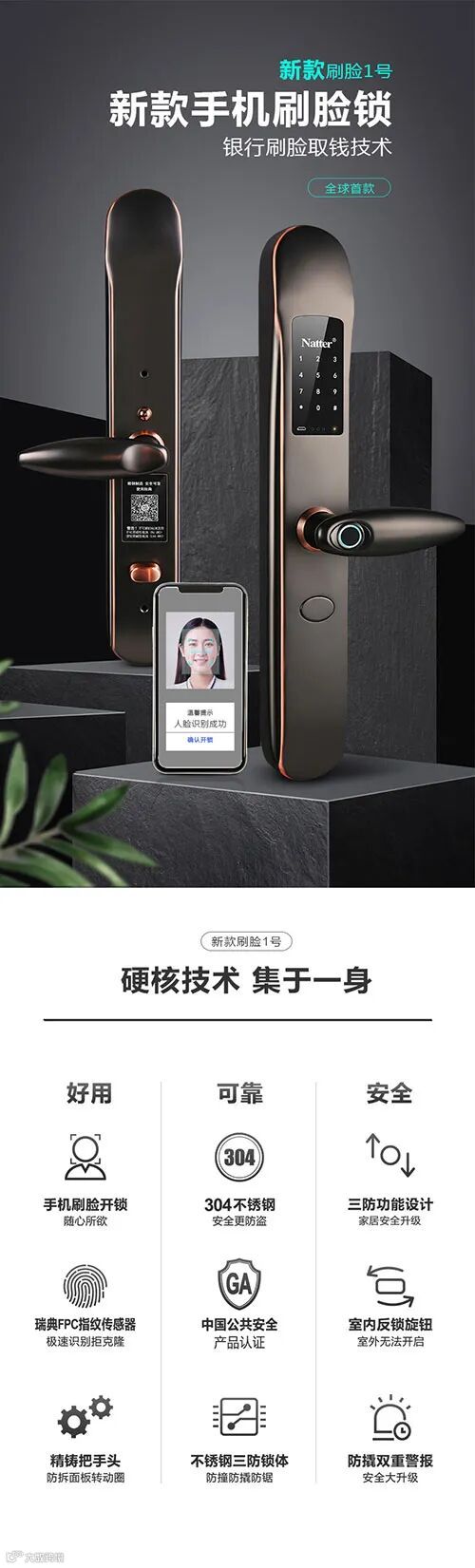 ◆银行取钱刷脸技术,只认主人刷脸,非主人刷脸或刷主人相片提示失败并报警,主人不用担心手机被盗或丢失;