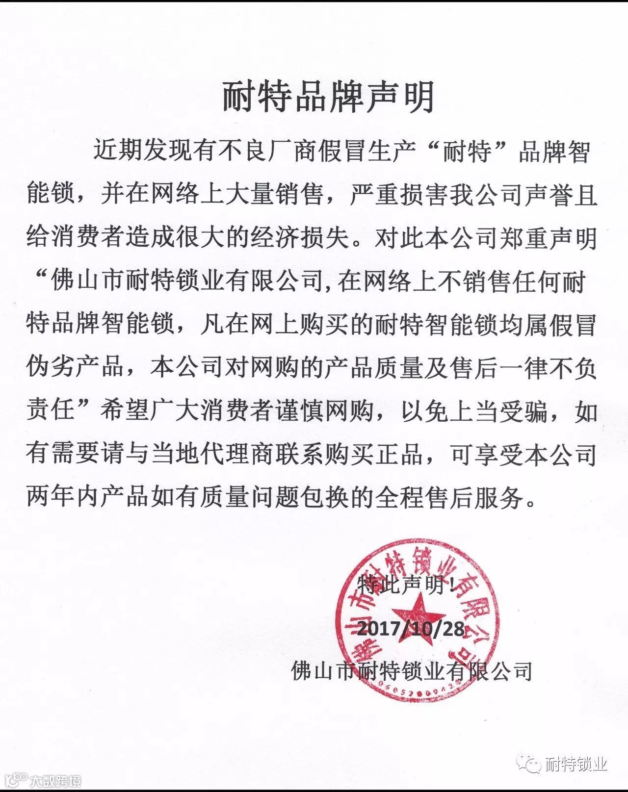 耐特品牌声明!