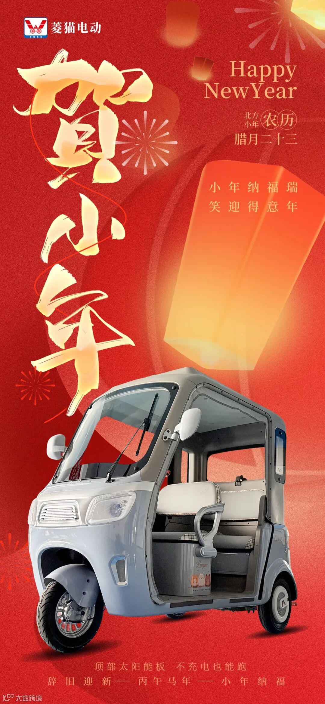 扫尽尘埃辞旧岁,菱猫伴你启新章。愿这台满载心意的休闲车,陪你奔赴每一场团圆,承载每一份期盼。小年安康,愿你以欢喜之心辞旧,以顺遂之意迎新,往后每一段出行,都有菱猫相伴,每一个新年,都有暖意相依❤️