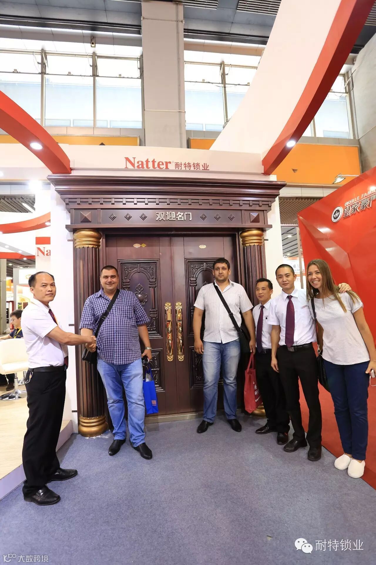 国外人仕对耐特锁非常好评,并合影留念