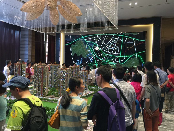 在营销中心的沙盘上,围满了前来看房的置业者。昨天还不是周末哦,就已经有这么多置业者到访,悠山美地的魅力可见一斑。