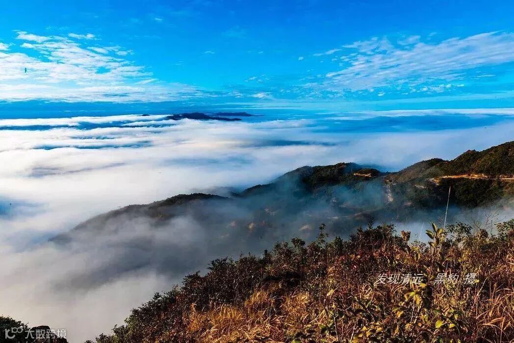 云海之上,天空格外的蔚蓝。波涛起伏的云海就像一层屏障,