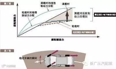 电子制动力分配系统:简单来说就是根据制动时轮胎摩擦力的不同,自动调节前、后轮的制动力分配比例,提高制动效能,防止发生跑偏、侧滑、甩尾等现象,使车子开起来更踏实。