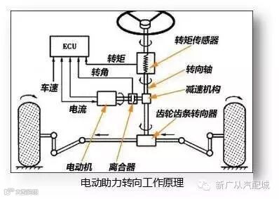 电动助力转向利用电动机产生的动力协助驾车者进行动力转向。相较于传统的无助力转向和液压助力转向,电子助力转向能轻松的实现可变助力,即在车速较低的时候助力能量大,方向盘轻;车速高时助力能量小,方向盘重,可变助力能够为行车的安全提供一定的保障。