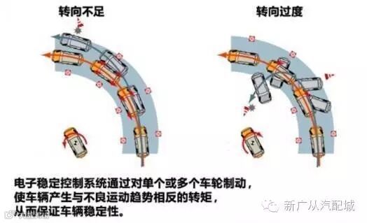 车身稳定控制系统:通过全车多项传感器,实现对单个或多个车轮的制动,使车辆产生与不良运动趋势相反的转矩。在危险行驶情况下,能够帮助车辆保持在安全的行驶轨迹上,从而保证车辆的稳定性。