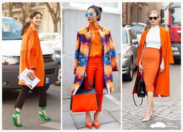 当然,作为春秋季节的流行色,橙色的单品的出街率更为广泛。只要简单搭配纯色调的黑白两色,一般都不会出错。