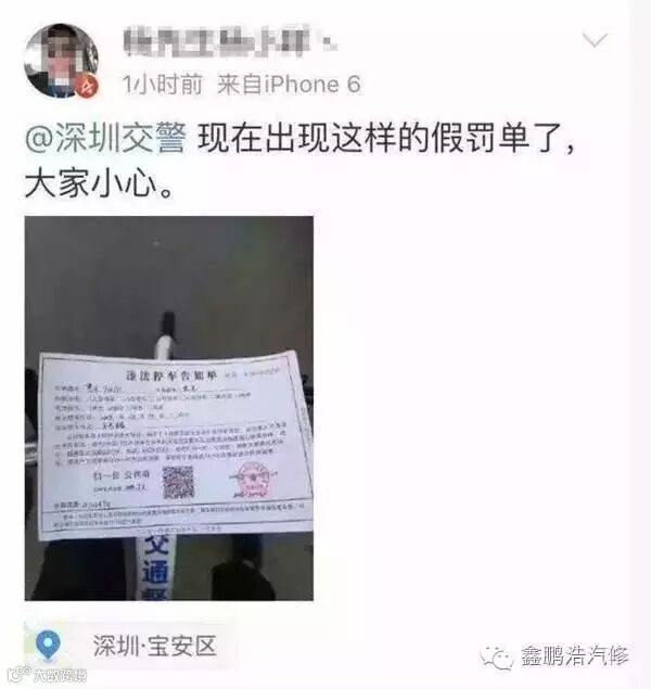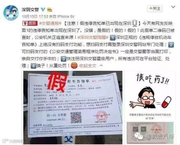 罚单也被骗子列入到业务范围中了!!深圳交警昨日下午发布通报称:假违停告知单已出现在深圳!