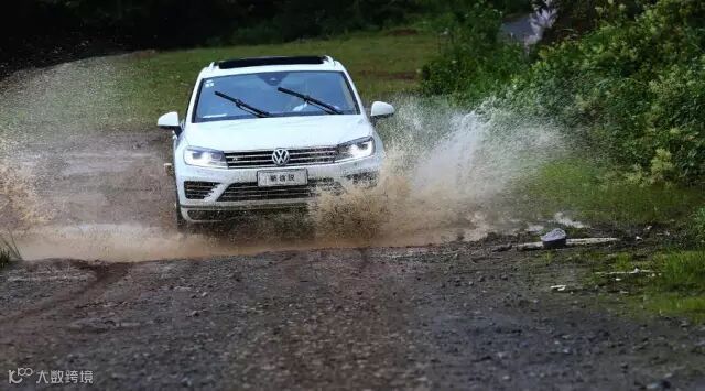 最大涉水深度达到580mm的新途锐即可轻松越过,飞溅的扬尘与水花折射着新途锐前行的自信与勇气!