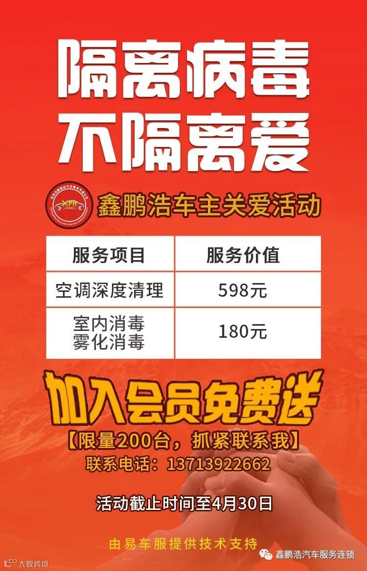 病毒无情,鑫鹏浩有️爱!送您爱车空调清洗➕室内消毒;加入会员免费赠送(空调深度清洗➕室内雾化消毒),数量有限,需要预留名额请联系:13713922662小林