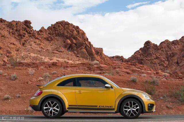 清晨,车队由拉斯维加斯出发开往棕榈泉,阳光的照射让沙尘黄色的甲壳虫Dune 格外耀眼;越过州界进入加州境内的一瞬间,车身又融入道路两旁遍布的山艾树与沙丘之中。甲壳虫Dune 将在全球推出9种车身配色,让车辆的跨界味道,与周边美景完美搭配。
