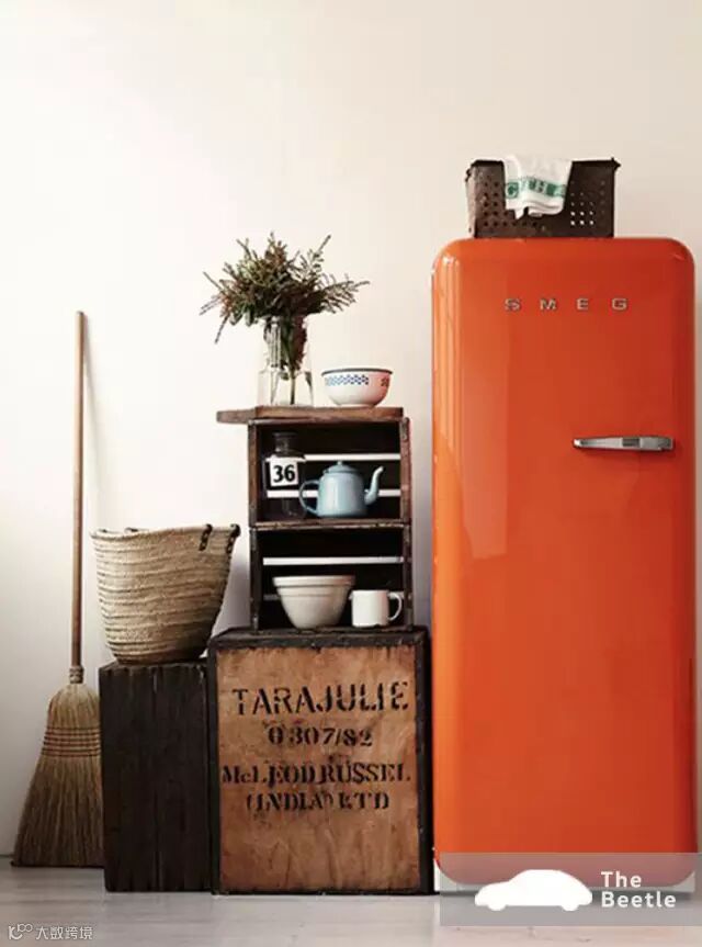 虽说色彩游戏注重大面积的纯色对撞,但搭配高手们不会忘记制造精致的小细节,如橙色的冰箱。