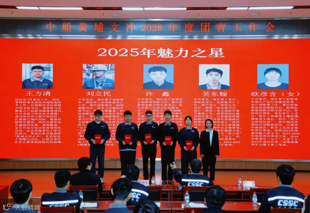 3月6日,中船黄埔文冲船舶有限公司团委召开2026年团青工作会。团南沙区委副书记陈丽月、龙穴街团工委书记肖青峰莅临会议,公司党委副书记、工会主席聂黎军出席会议。公司各直属党组织书记、各级团干及团员青年代表等参加会议,会议由公司团委副书记王耀主持。