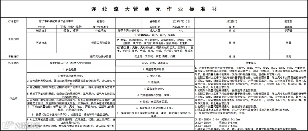 通过编制表面化的标准作业(即以表格为准的作业)。将改善后的作业标准用表面化的形式加以巩固、改善和提高,从而保证连续流的执行。