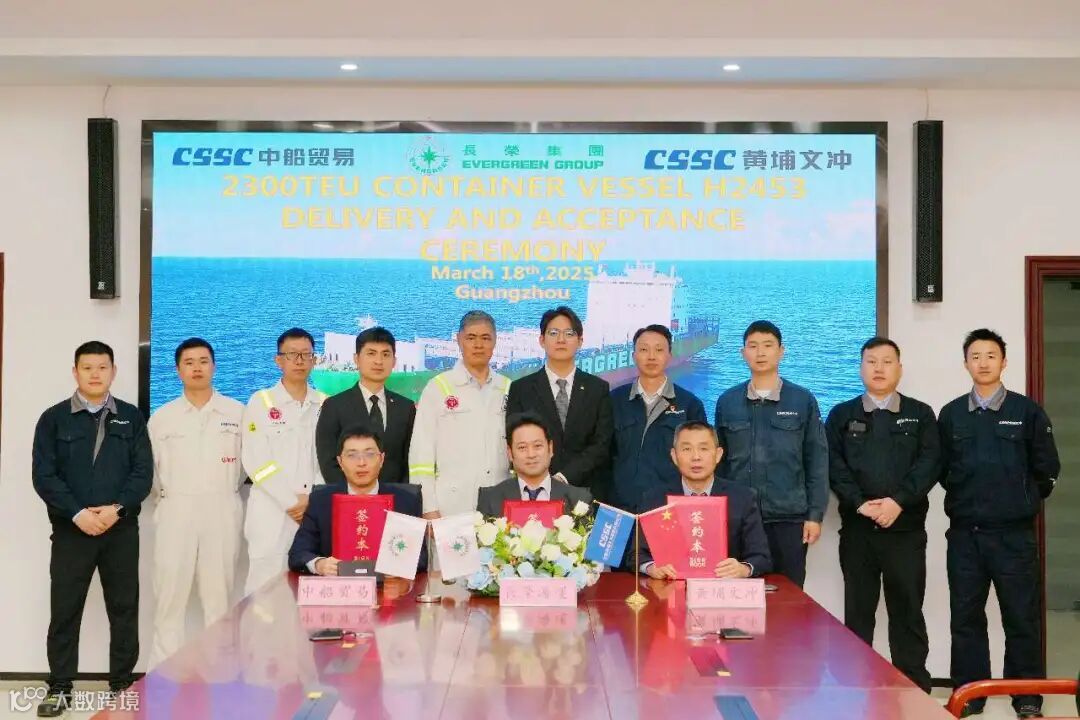 2025年3月18日,中船集团黄埔文冲为长荣海运建造的2300TEU系列第7艘“EVER WISE”轮顺利签字并于当天离厂,较合同期提前6个月。