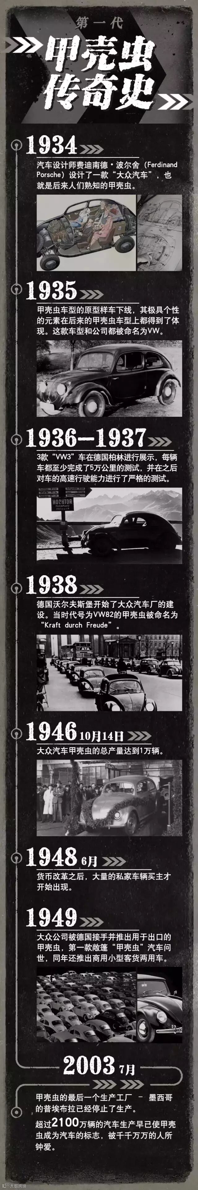 从一开始的默默无闻到今天为大众熟知,甲壳虫曾在黑白交错的日子里历经辗转漂泊,这位明星选手的发展史可谓传奇。1948年以前,大部分甲壳虫用于军用。随着货币改革后大量私家车辆买主的出现,才开始走入大众市场。那么,在战后恢复的时光里甲壳虫是怎样一步步发展壮大而有了今日的辉煌?一起来看看甲壳虫的传奇发展史吧!