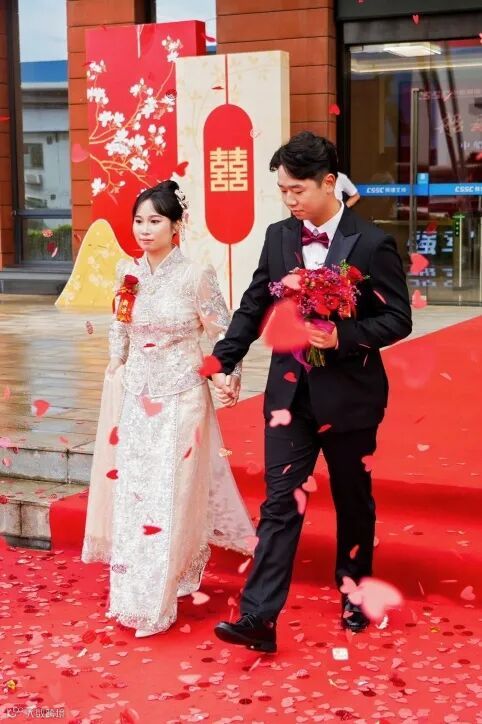新人百年好合,祝愿更多来自五湖四海的青年在黄埔文冲绽放幸福之花,结出丰硕之果。