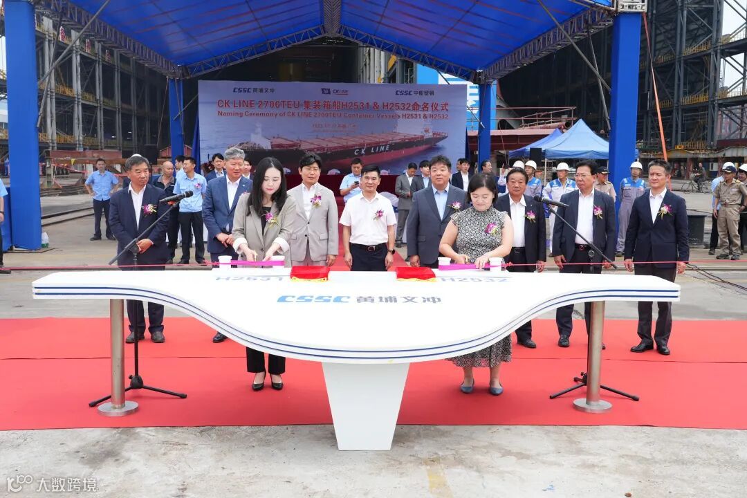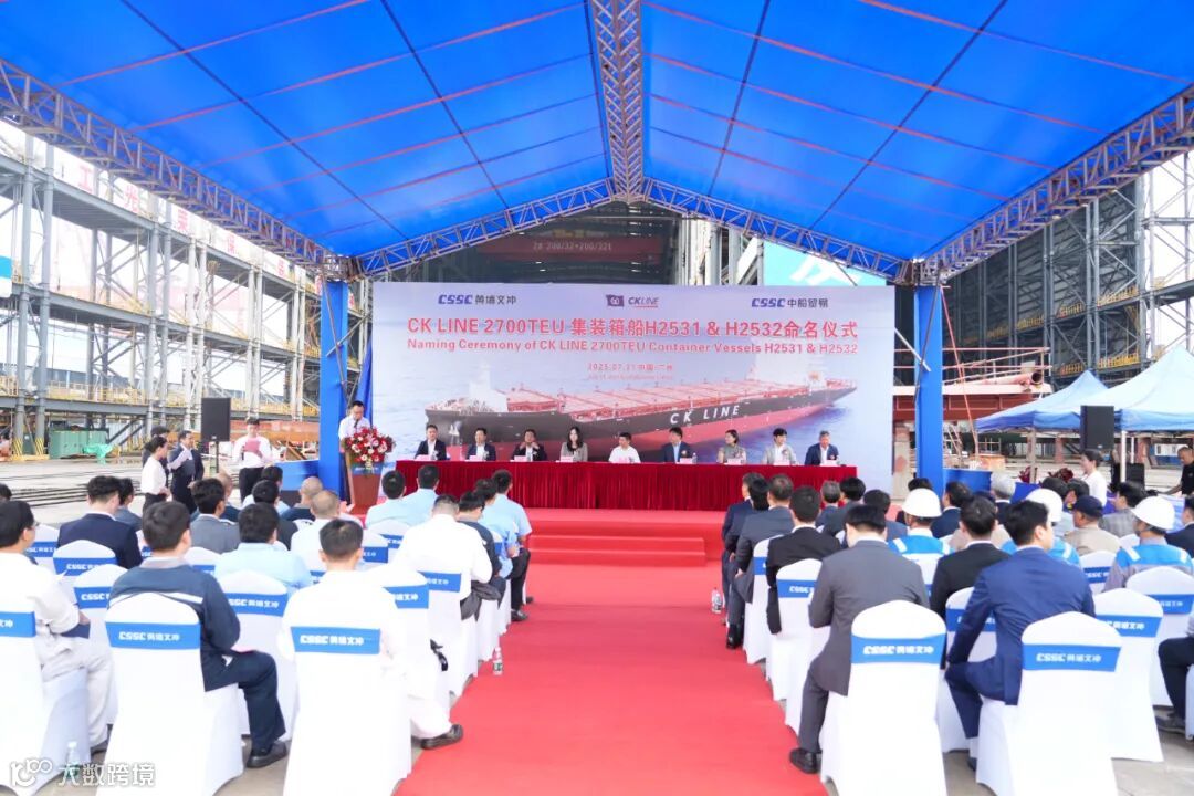 2025年7月31日,中船集团旗下中船黄埔文冲船舶有限公司为韩国CK Line公司建造的2700TEU集装箱船1#船H2531、2#船H2532举行命名仪式。