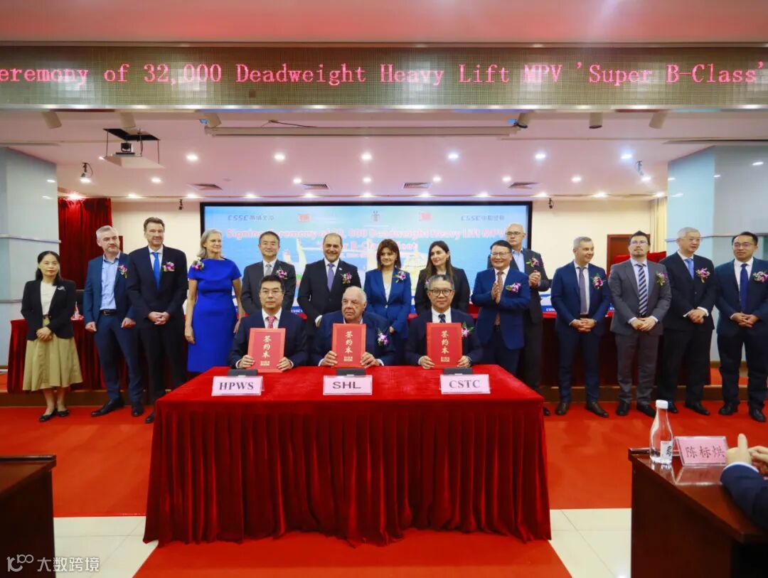 SHL集团董事长Mr. Schoeller、中国船舶工业贸易有限公司船海业务三部总经理荣耀、公司副总经理韩建兵代表三方在合同文本签字。