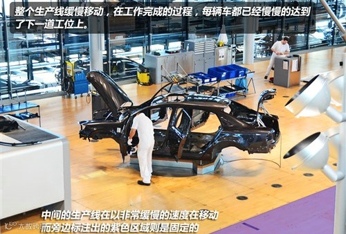 这里的生产线还有一个不同就是它是在缓慢移动的,旁边的过道是不动的,移动的速度非常慢,不仔细观察,刚开始并不会发现。每个工人在完成自己所负责工序的同时,每辆车便已经慢慢的达到了下一道工位上。