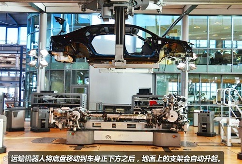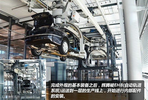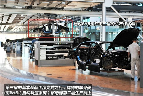 完成以上的工序之后,透明工厂二层装配工艺已经完成,基本完成的辉腾被EHB系统移动到一层,完成最后内部配件装配的工序上。