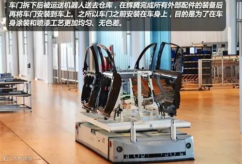 当车身被放在相应的工位上,第一件事儿就是把四个车门拆掉,目的是为了可以更加方便的装配所有配件,车门拆下后被运送机器人送去仓库。工厂内的所有运输工作都交给了这种机器人,对于已经可以达到全部自动化生产的水平,却还在大量的使用人工来完成工作,对于辉腾这个级别的制造厂商来说还是不多见的。在他们看来,更多专业工人在装配和检测上所呈现出的质量要比机器表现的更加完美和精致,所以为了辉腾体现精雕细琢的制造工艺和品质,厂家将装配工序的97%完全交给了手工工艺来完成。