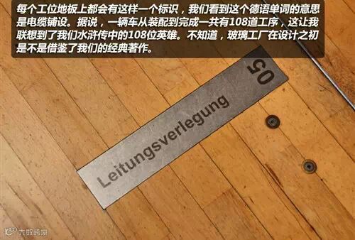 在每个生产环节都会有相应的标号,除了数字还有相应的名称,据了解这个环节一共有108个工位,这也让我联想到了水浒传中的一百单八将。据工厂的工程师说,透明工厂每天从早上8点到晚上23点进行工作,工人分两个班次,人数总共在300左右,也就是说,每个班次会有150人左右,一辆辉腾从装配到完成要经过这一百多人的装配才可以完成。