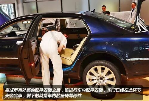 到这里,辉腾已经完成了第二层的所有工序,该进入到装配内饰的环节了。在这部分,所装配的都是客户亲自挑选的,无论是颜色还是材质几乎没有是完全相同的。除了装配座椅,之前被拆掉的车门现在也已经安装在了车身上。
