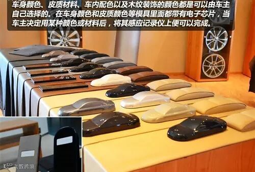 在定制中心里,客户可以根据要求为自己的爱车选择玻璃的颜色、内饰的颜色、面料等。在颜色和皮革面料的选择上,每个模具下面都会有一个电脑感应芯片,工作人员将它扫描记录在电脑里就可以完成订单了。内饰选择的环节展示了木质装饰件从原材料转变为可以使用的装饰件的过程,除了切割、成型外,单最后磨具的表面抛光就要经过八道工序的处理。