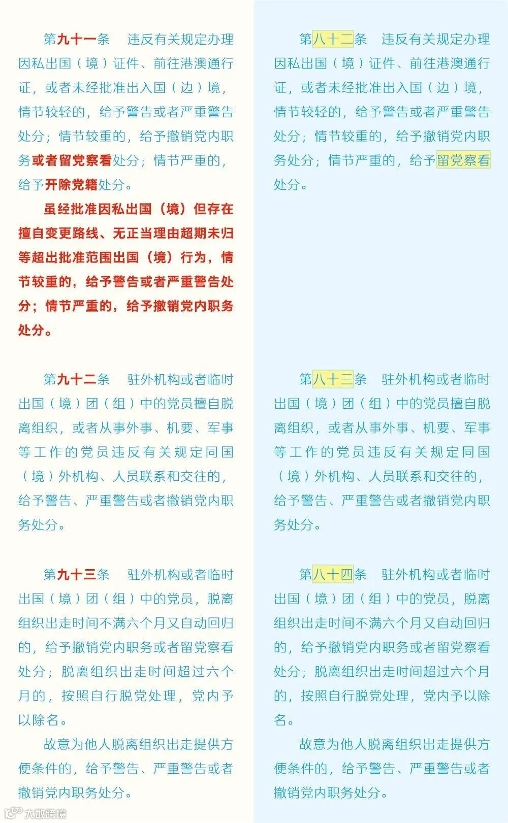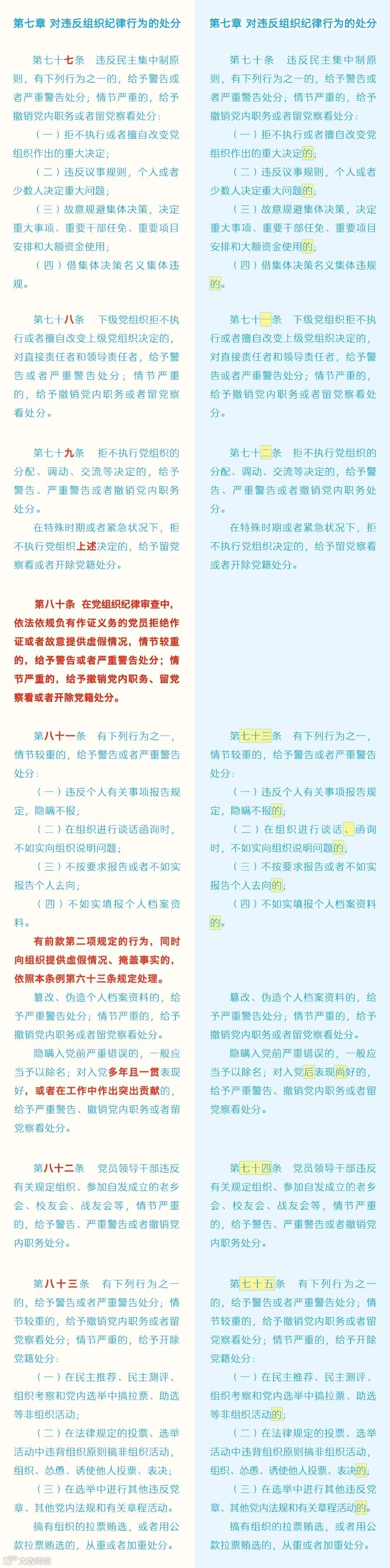 廉洁教育微党课——《中国共产党纪律处分条例》修订条文对照表(7)(来源中央纪委国家监委网站)