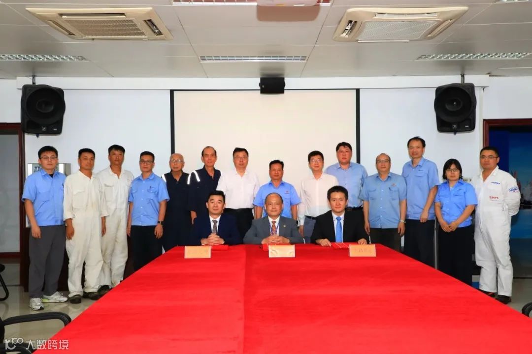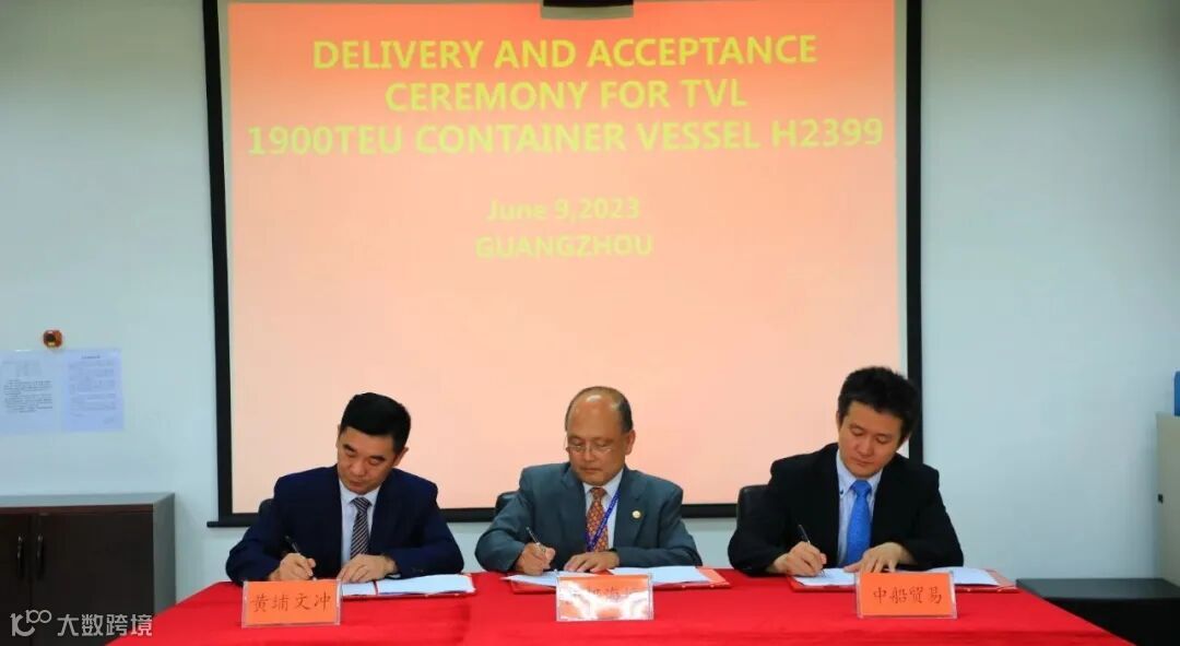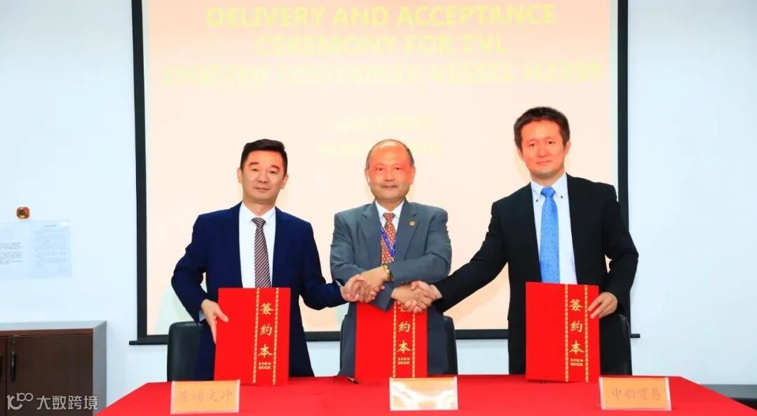 在各单位来宾与领导的共同见证下,黄埔文冲、世邦海运、中船贸易的代表在交船文本签字。