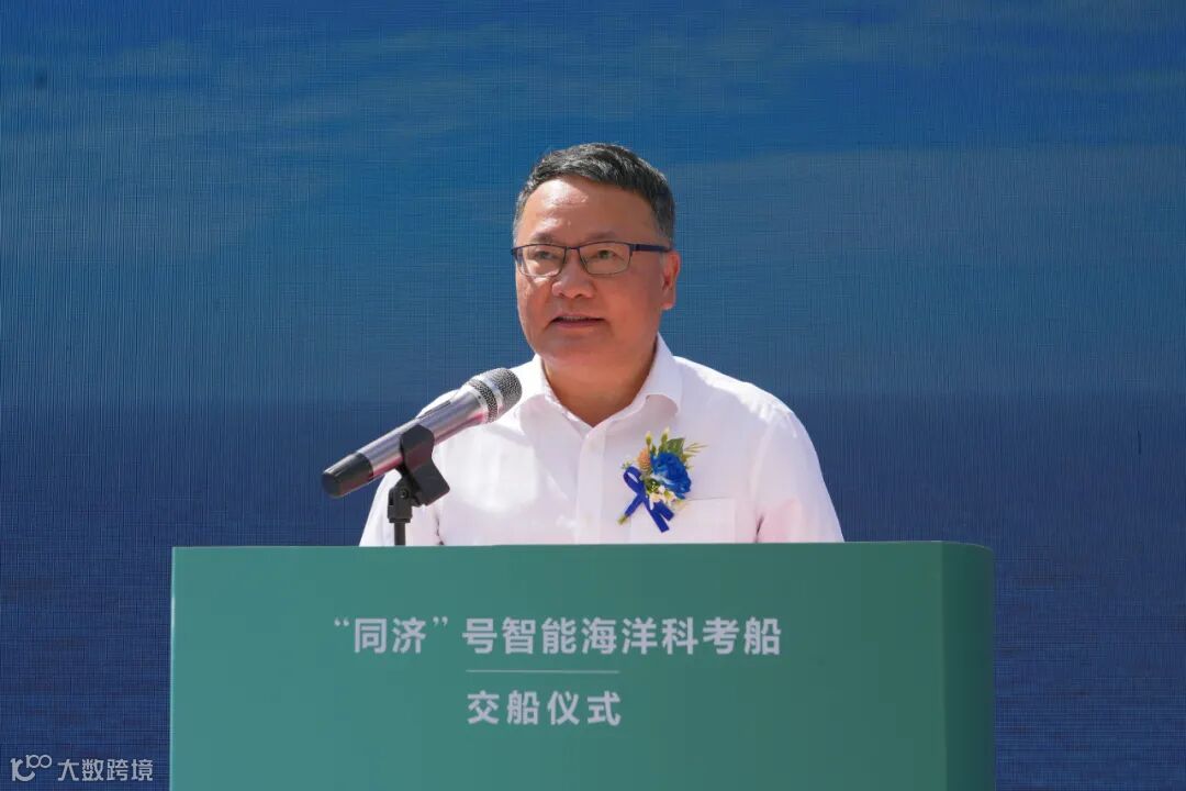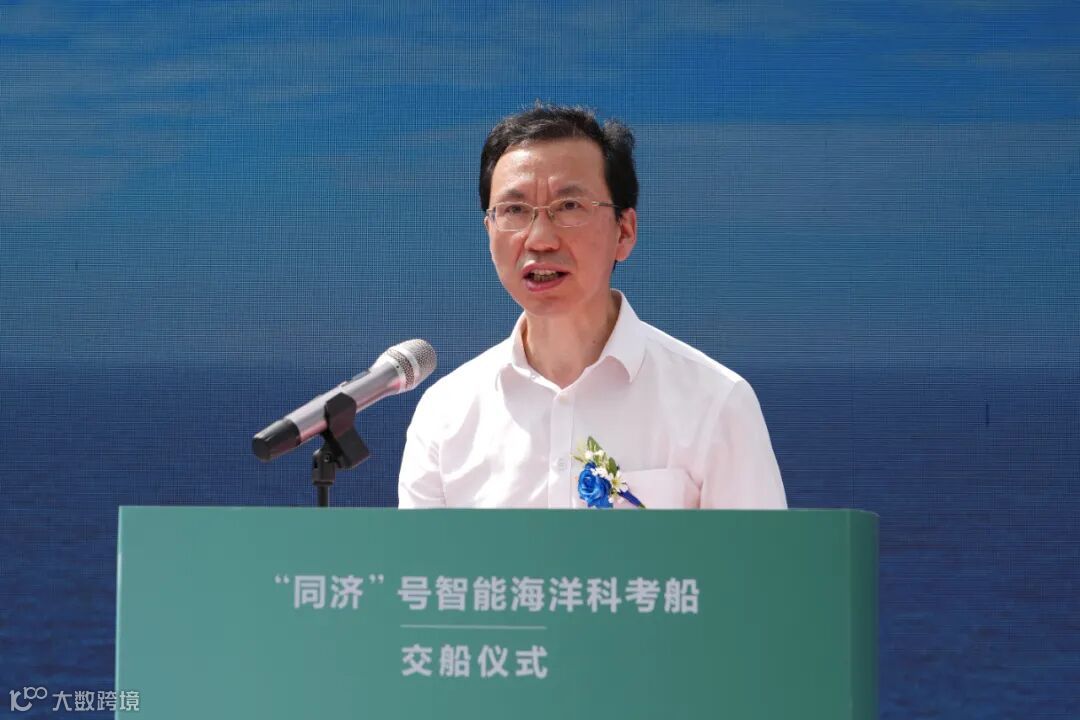 中国工程院院士、同济大学党委书记郑庆华致辞并向各参建单位表示感谢,“同济”号智能海洋科考船的成功交付,是同济大学践行海洋强国战略的重要里程碑,未来,学校将以“同济”号为载体,着力成为培养海洋专业精英的“摇篮”、突破关键技术的“熔炉”、服务国家战略的“旗舰”,为加快建设海洋强国交出同济答卷!