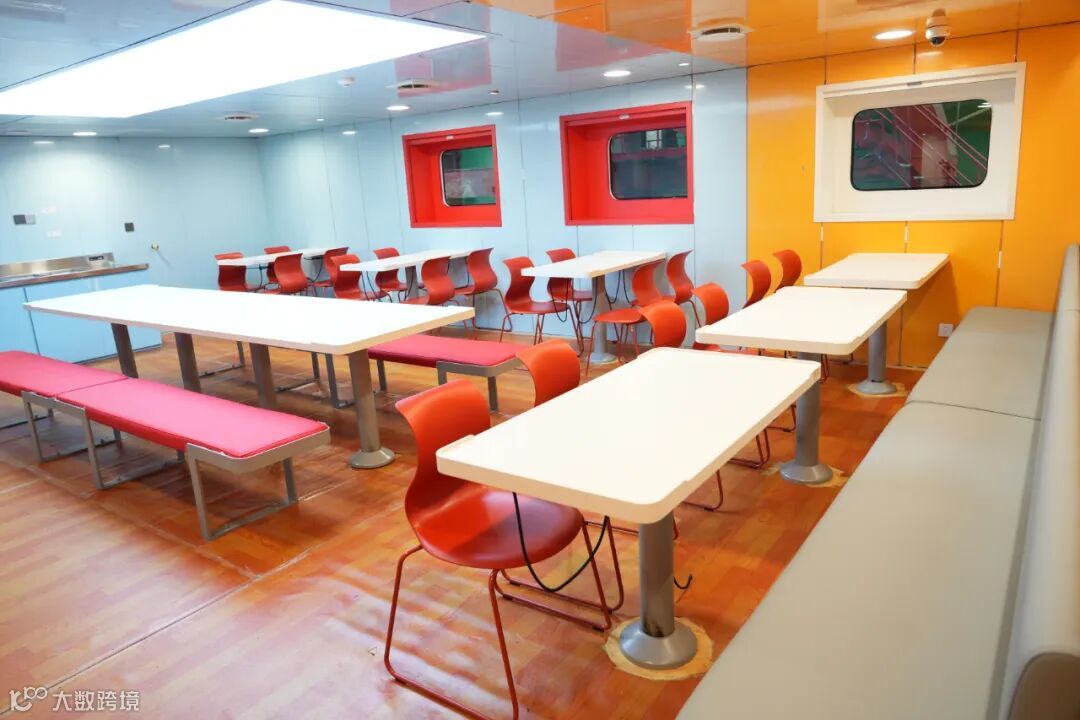 “同济”号在人文关怀设计上充分考虑了师生长期海上作业的舒适性、健康保障与工作便利性,采用酒店式标准打造居住舱室,设置宽敞明亮的餐厅、休闲区及健身空间,并引入自然光照设计,缓解长期封闭环境带来的压抑感;全船采用高效隔音材料和减振系统,显著降低机舱噪音对生活区的影响;工作区自动调节温湿度、照明亮度,保证工作环境舒适等,体现了“以人为本”的核心理念。