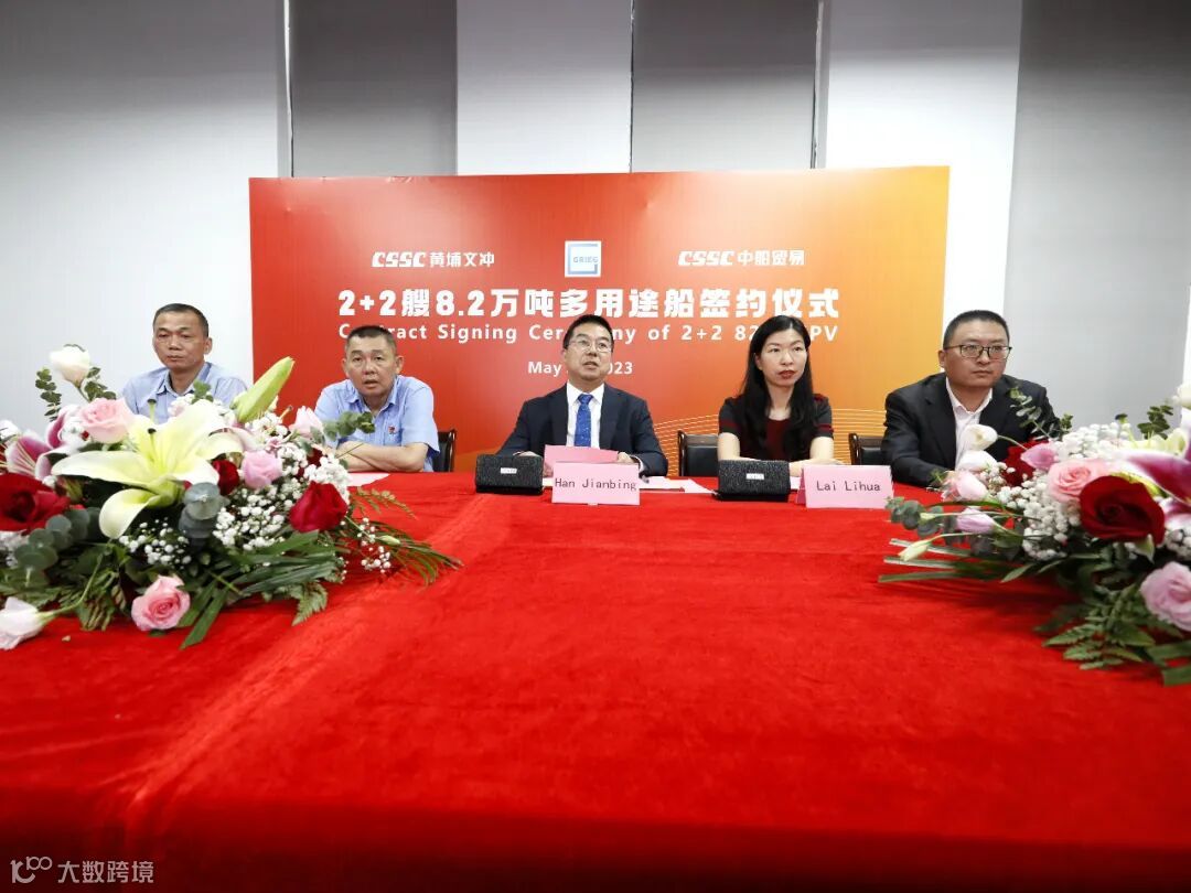 近日,中国船舶集团属下中船黄埔文冲船舶有限公司联合中国船舶工业贸易公司与挪威Grieg集团签署2+2艘8.2万吨多用途船建造合同,船东公司、中船贸易公司、黄埔文冲公司等单位领导共同出席此次云签约仪式。