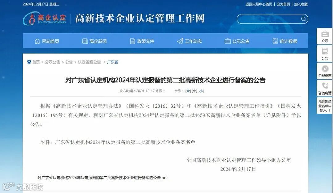 近日,根据工信部《对广东省认定机构2024年认定报备的第二批高新技术企业进行备案的公告》,中船黄埔文冲成功获批“国家高新技术企业”(简称“高企”)认定。