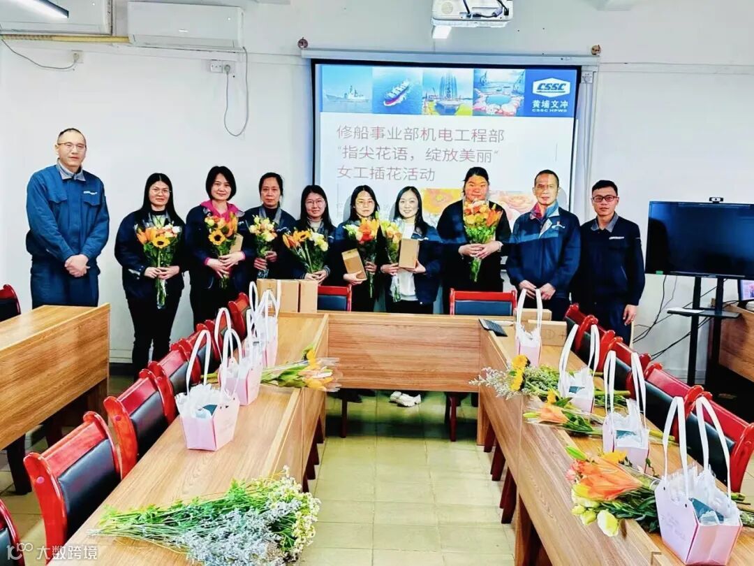修船事业部工会联动多部门开展特色活动,在插花课堂上,一双双巧手将玫瑰、康乃馨与绿叶搭配成艺术花篮,传递对美好生活的热爱;茶艺讲座中,茶香氤氲,女职工们品茗论道,学习传统文化中的“静心”智慧。