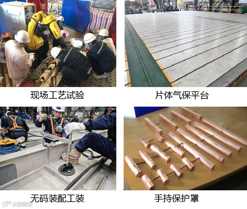 通过钛合金深熔焊的首次应用,平面角焊缝高速小车应用,片体和部件气保平台、无码工装的研制应用等一系列技术创新,有效提升了建造效率和质量。