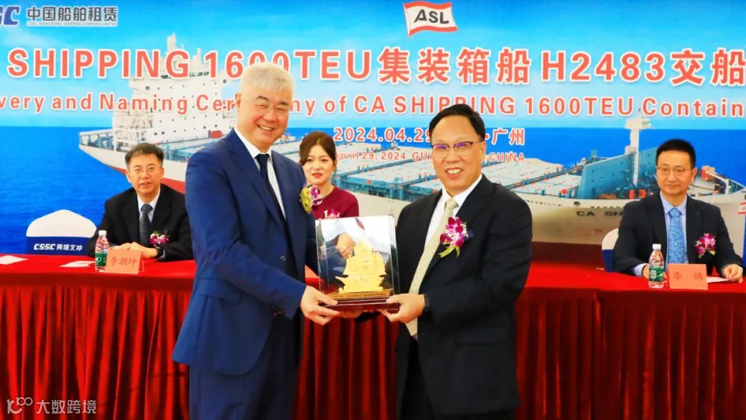 4月29日,中国船舶旗下中船黄埔文冲船舶有限公司为CA SHIPPING批量建造的1600TEU集装箱船首制船H2483命名交船,较合同期提前3个月。