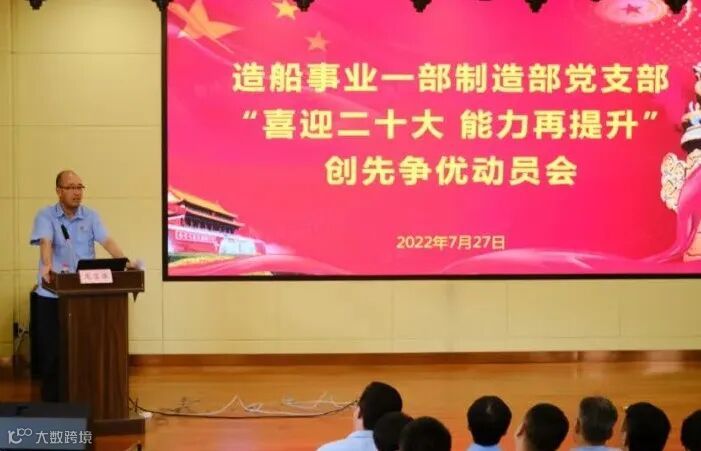 7月27日,造船事业一部制造部召开2022年年中经营策略发布暨“喜迎二十大 能力再提升”创先争优动员会。