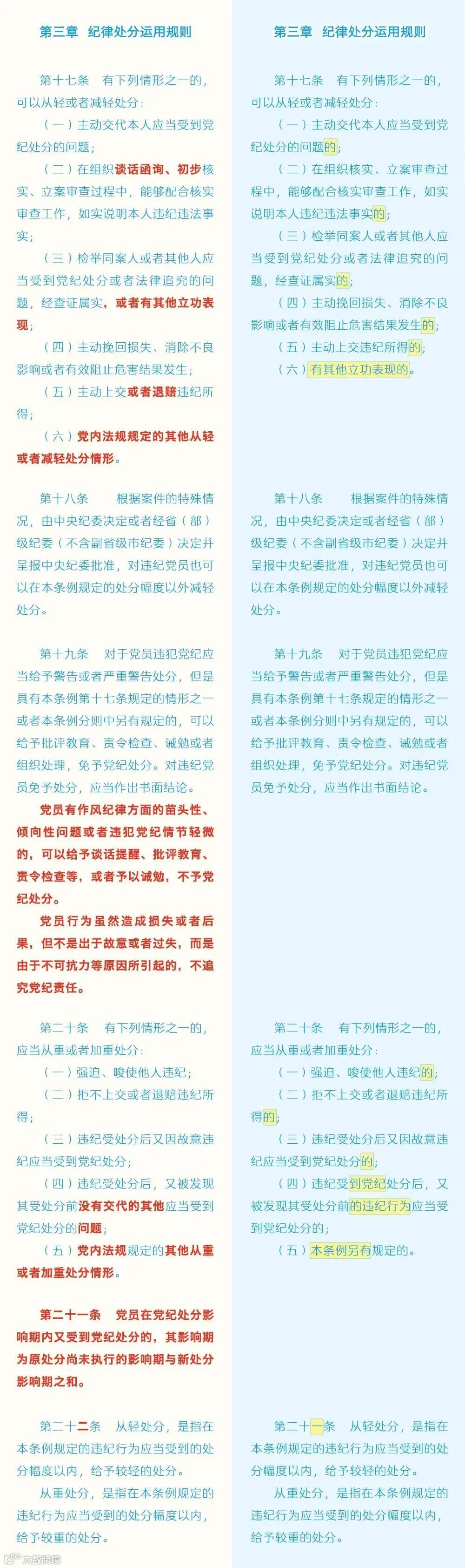 廉洁教育微党课——《中国共产党纪律处分条例》修订条文对照表(3)(来源中央纪委国家监委网站)