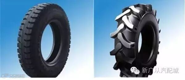 图:羊角和人字花纹轮胎,花纹沟方向与圆周方向垂直。