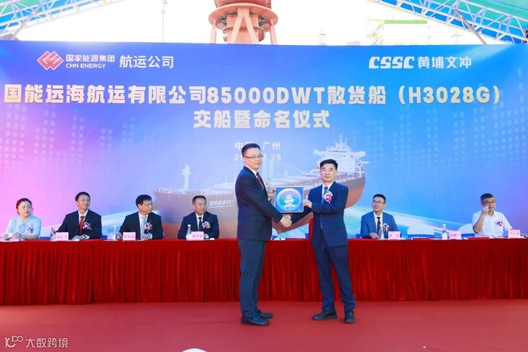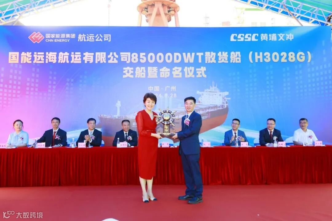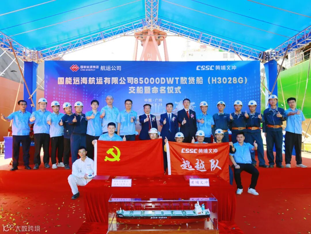 “国家能源821” 是公司为国能远海航运有限公司批量建造的“海鲸”85000DWT散货船的首制船,刷新公司首制船的试航纪录、码头阶段以及短周期交船发证记录,以提前一年有余交付,演绎了黄埔文冲高质高效的建造水平。