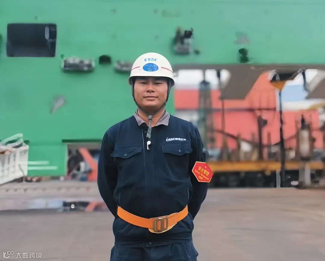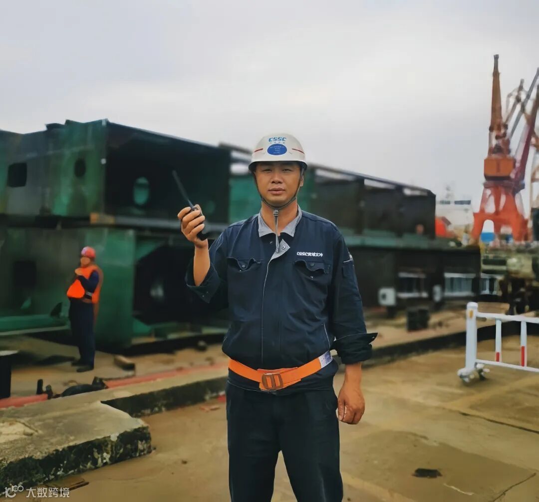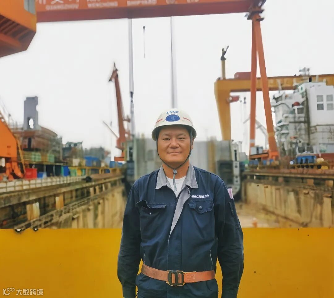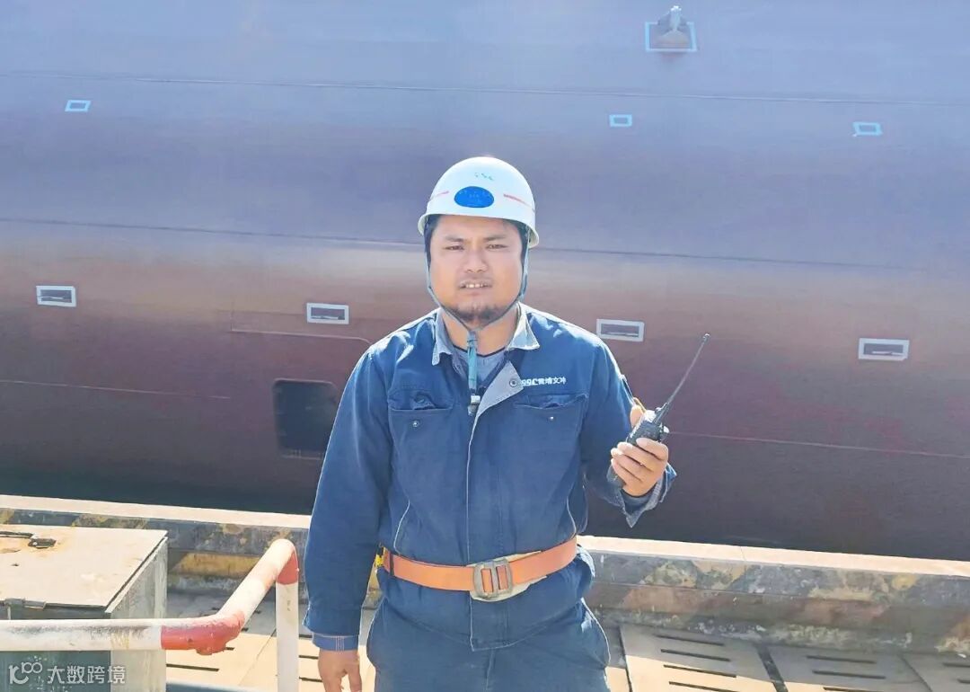 梁有贤,搭载一部起运起重五班班长,他的主要工作是带领班组完成船舶机电设备、轴、桨、舵吊运安装;船坞出坞、船台下水、码头移船带缆、绞车拉力和吊车负重试验、备件进舱等工作。