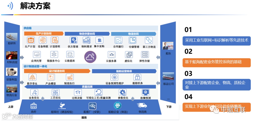 产业链协同系统有效打通了包括采购、物流协同、生产作业及质量管理等船舶行业供应链管理环节。通过标识实现一码贯通、系统整合的能力,依托标识共享的数据链路,打通端对端的数据链路,促进工业企业产业化的升级和业态模式的创新。在数字化大潮之下,中船互联将继续以标识为驱动,依托自主研发能力,不断提升在数字化市场上的竞争力,持续助力广大企业实现数字化转型。