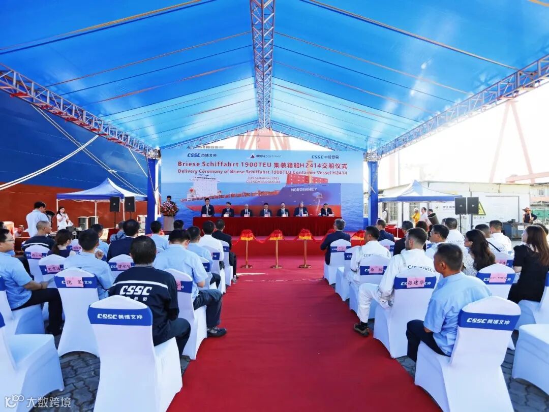仪式当日,中船黄埔文冲总经理助理徐青主持仪式,副总经理韩建兵代表公司致欢迎辞,Briese航运公司行政总裁Wilke Briese发表讲话并对黄埔文冲表示感谢。