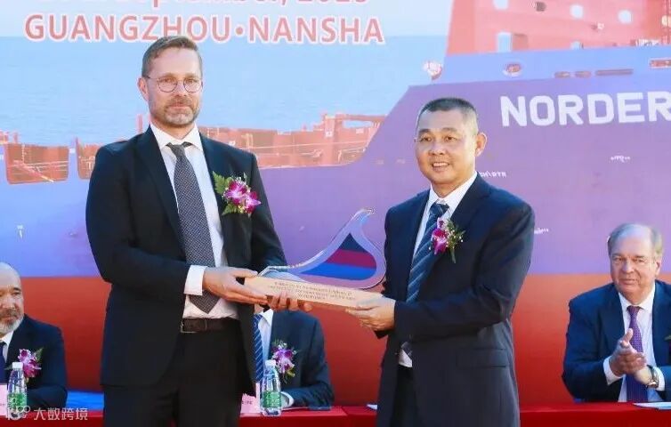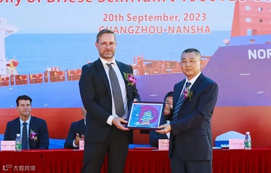公司总经理助理陈标烘与Wilke Briese分别代表船厂、船东方互赠纪念品。