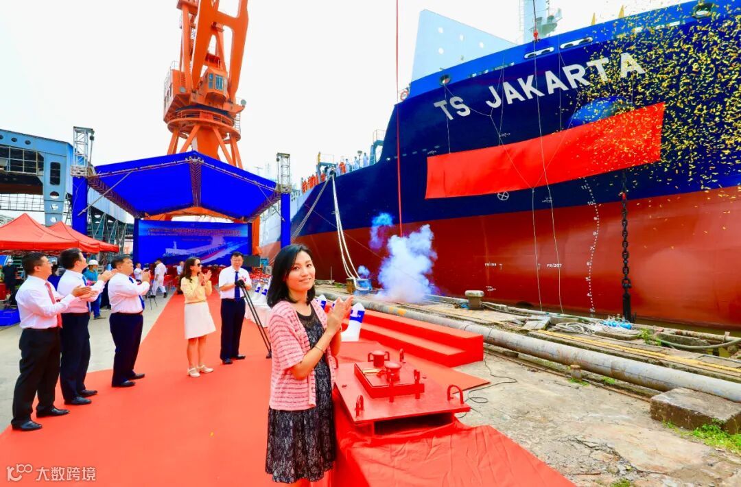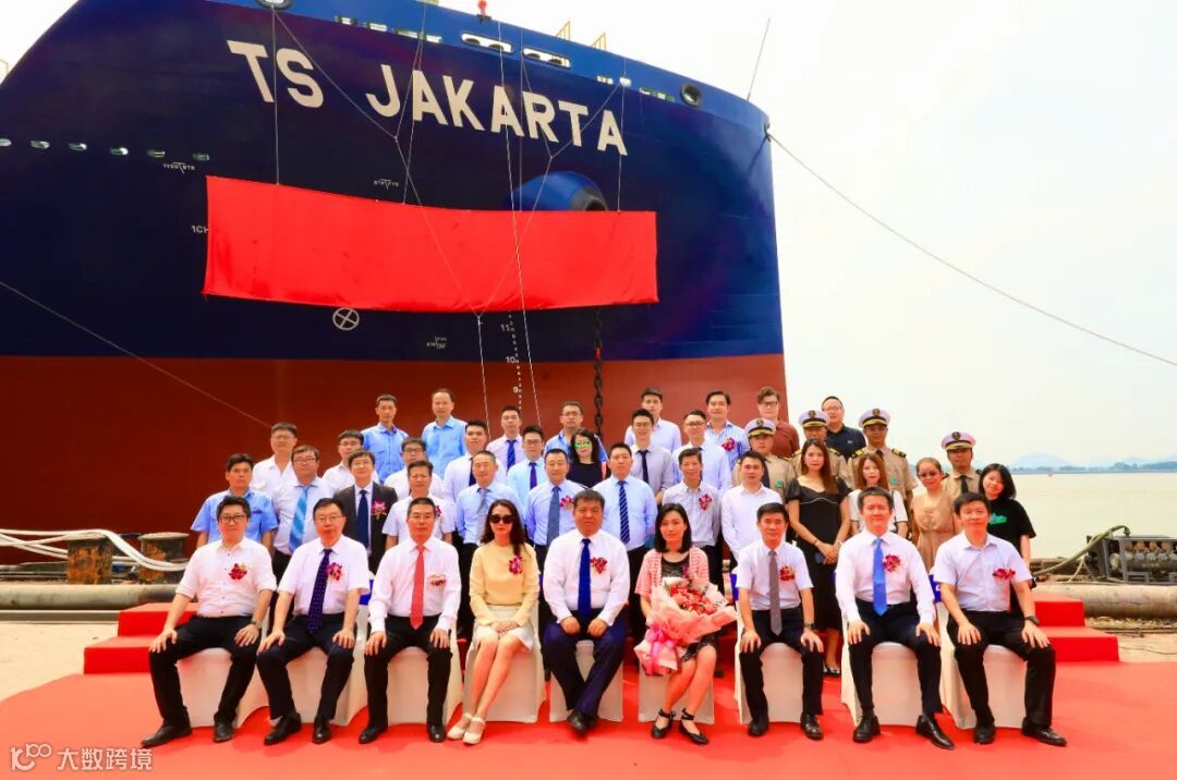 教母成琳为该船命名为“TS JAKARTA”轮。作为公司成熟主建船型“鸿鹄”系列的一员,该船较合同交船日期提前115天交付,标志着公司系列船建造愈发成熟、全面提速。